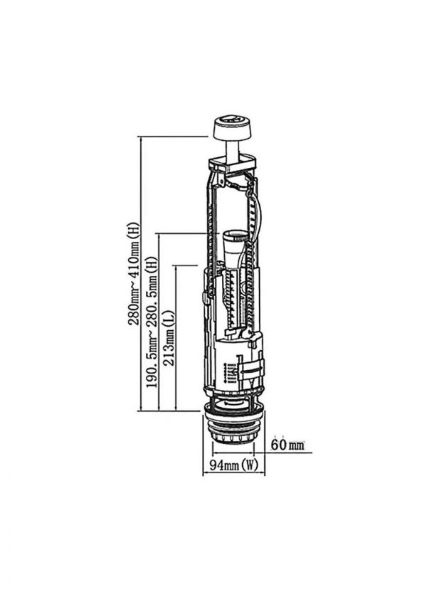 Клапан для бачка унитаза нижний, двухрежимный, сливной, Orio, АС-12Х