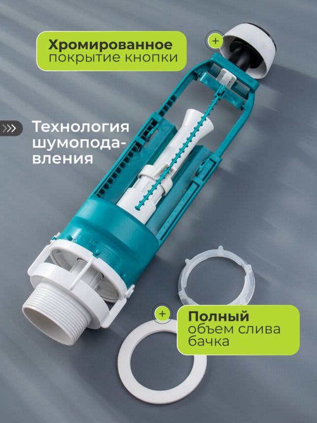 Клапан для бачка унитаза пластик, однорежимный, кнопочный, хром, сливной, Инкоэр, СБкпм-А Р