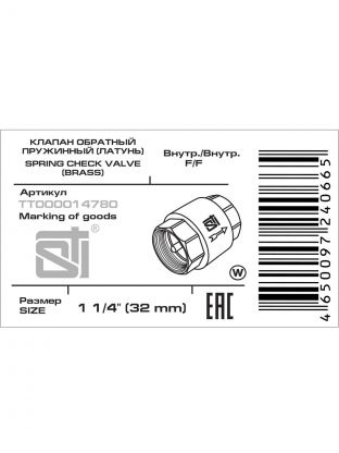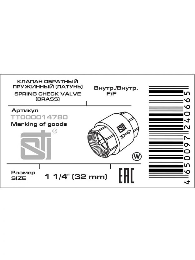 Клапан обратный пружинный STI 32 New из латуни — надёжное решение для защиты водопровода от обратного тока. Диаметр подключения 1" 1/4, выгодная цена.