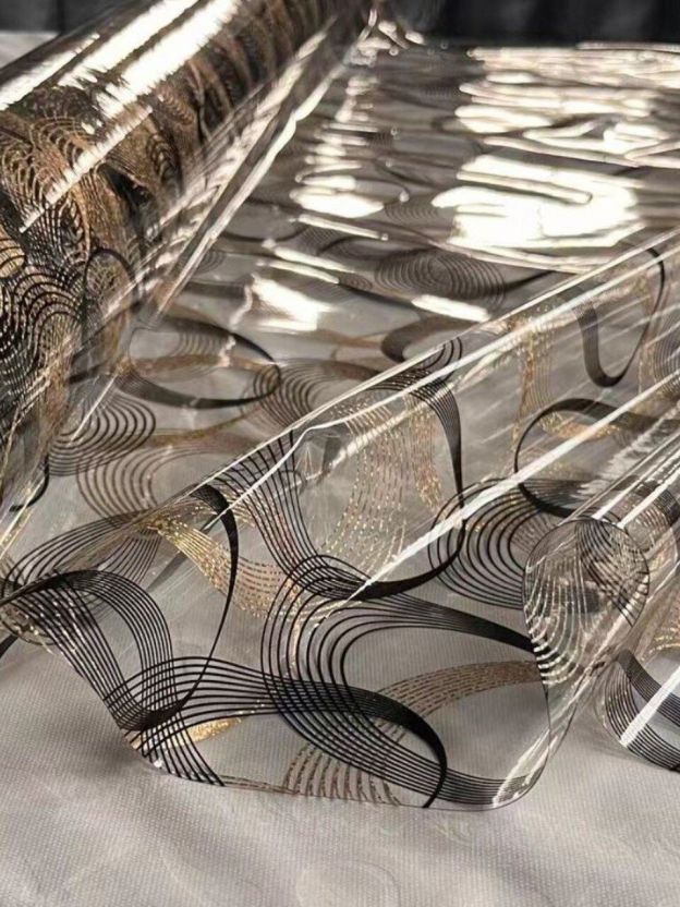 Да, благодаря прозрачному фону и золотому декору клеёнка гармонирует с любой посудой и текстилем, создавая праздничный акцент.