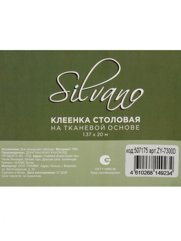 Клеенка Silvano, 3D, 1.37х20 м, ПВХ на тканевой основе, ZY-7300D