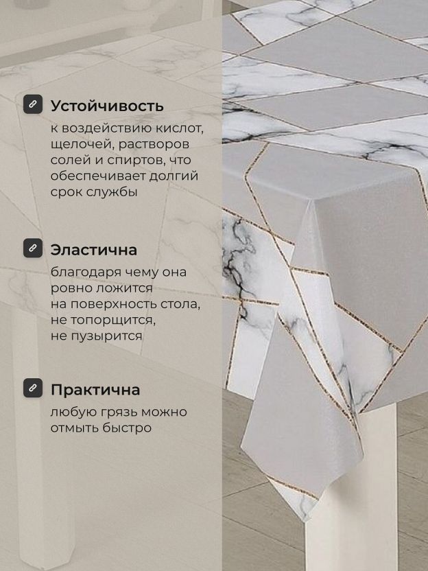 • Полотно непроницаемо для воды и жира, не мнется и сохраняет эстетическую привлекательность до конца срока эксплуатации.