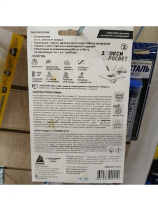 Двухкомпонентный клей, состоящий из очищенной композиции на основе эпоксидных смол и отвердителя аминного типа.