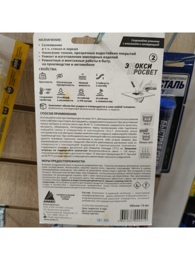 Клей Анлес, эпоксидный, для стекла и пластика, водостойкий, двухкомпонентный, 13 мл, 70021, Просвет