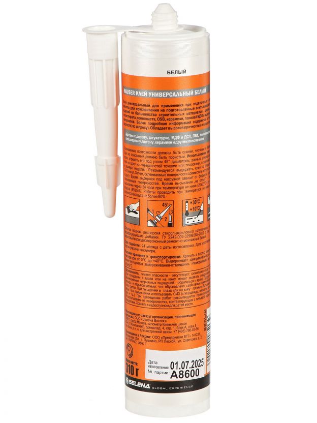 • Экономичность: удобный картридж 310 г, однокомпонентная формула, быстрое схватывание за 10 минут.