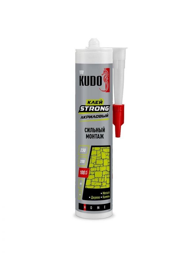 Высококачественный универсальный акриловый клей KUDO «STRONG» специально разработан для быстрого и надёжного монтажа изделий из древесины, ДСП, ДВП, EPS, XPS, ПВХ и UPVC на бетонные, кирпичные, каменные, металлические, оштукатуренные и деревянные поверхности. Клей существенно ускоряет отделочные работы, экономичен и прост в использовании. Предназначен для наружных и внутренних работ.