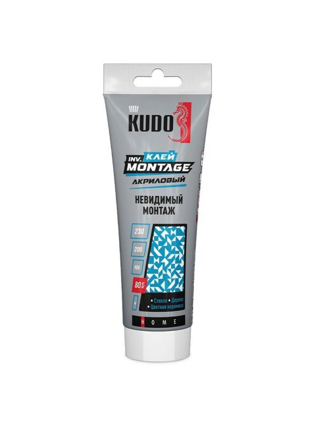 Высококачественный универсальный акриловый клей KUDO специально разработан для быстрого и надёжного монтажа изделий из древесины, ДСП, ДВП, EPS, XPS, ПВХ и UPVC на бетонные, кирпичные, каменные, металлические, оштукатуренные и деревянные поверхности. Рекомендуется для монтажа изделий из стекла, цветной керамики, дерева и т.д. После высыхания образует эластичную прозрачную плёнку. Предназначен для внутренних работ. Не рекомендуется использовать в ванных комнатах и душевых кабинах.