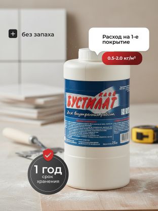 - Расход: 0.5-2.0 кг/м2 (в зависимости от размера и веса приклеиваемого материала).