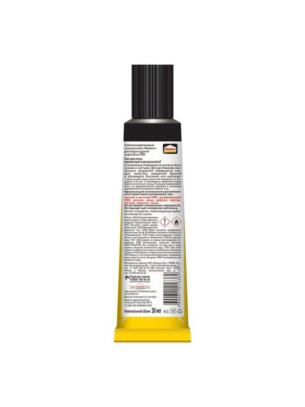Клей обеспечивает, эластичное, прозрачное и водостойкое клеевое соединение. Не содержит толуол - безопасен при использовании и эксплуатации.
