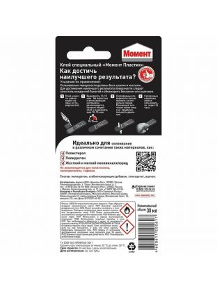 Однокомпонентный Клей Момент - идеальный продукт для склеивания разных видов пластика в различных комбинациях.