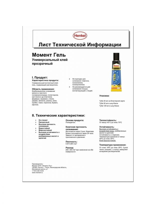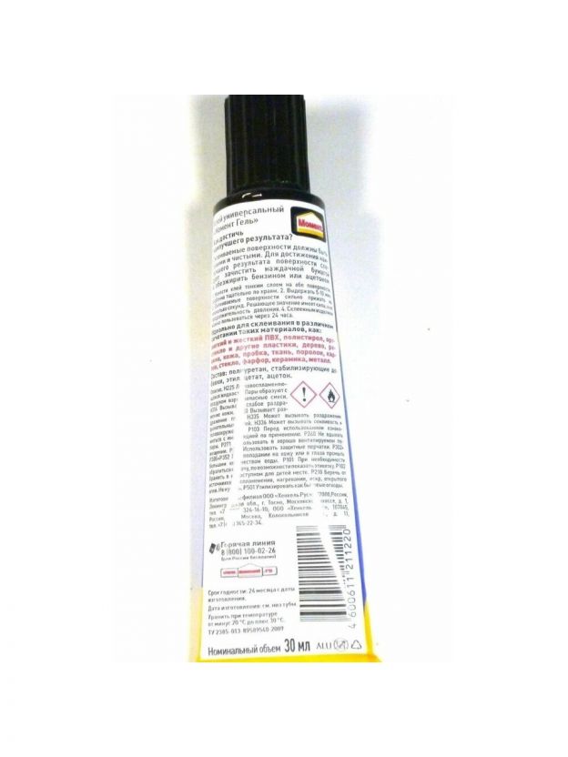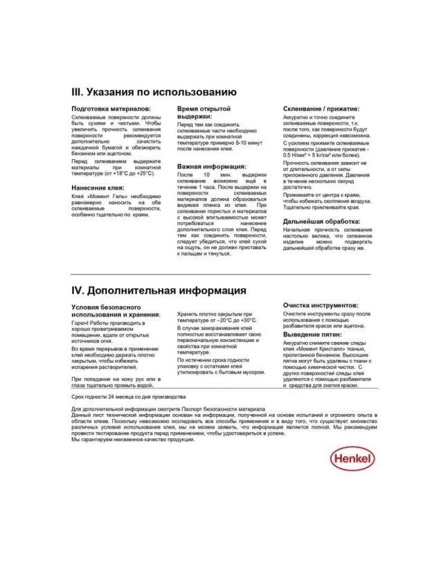 В случае транспортировки или хранения клея при минусовой температуре перед применением его необходимо выдержать при комнатной температуре до восстановления однородной консистенции. После восстановления клей полностью сохраняет свои свойства. Не подходит для склеивания посуды, контактирующей с пищей.