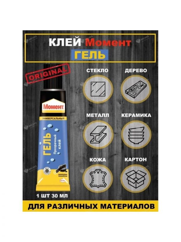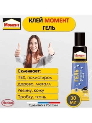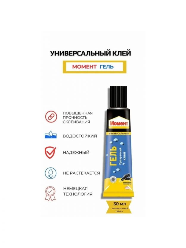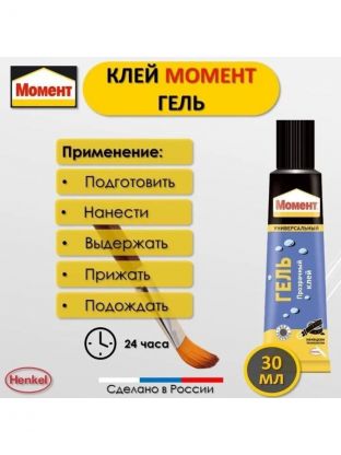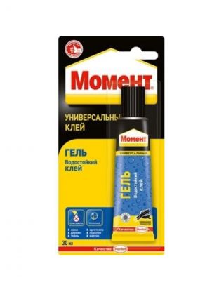 Клей Момент, универсальный, прозрачный, водостойкий, однокомпонентный, 30 мл, 997778, Гель