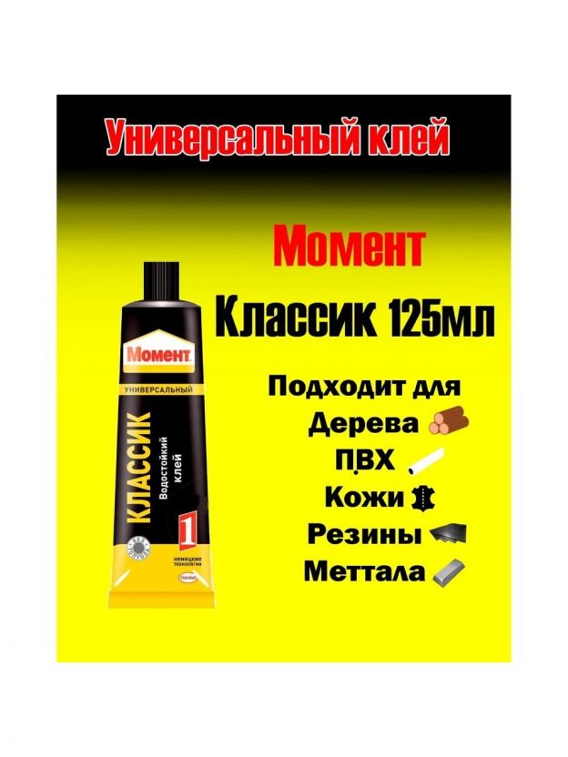 Клей Момент, универсальный, водостойкий, однокомпонентный, 125 мл, 781737, Классик