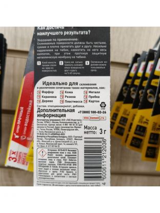 Клей предназначен для всех видов быстрых ремонтных работ в быту, в мастерской, в автомобиле, для изготовления моделей. Склеивает мгновенно. Жидкий, заполняет мельчайшие трещины. Не пригоден для полиэтилена, тефлона, стиропора и синтетических тканей.