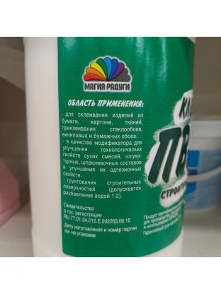 Данный клей применяется для склеивания изделий из бумаги, картона, тканей, приклеивания стекловолоконных, виниловых и бумажных обоев. Может использоваться в качестве модификатора для улучшения технологических и адгезионных свойств сухих строительных смесей, штукатурных, шпатлевочных составов или для грунтования строительных поверхностей.