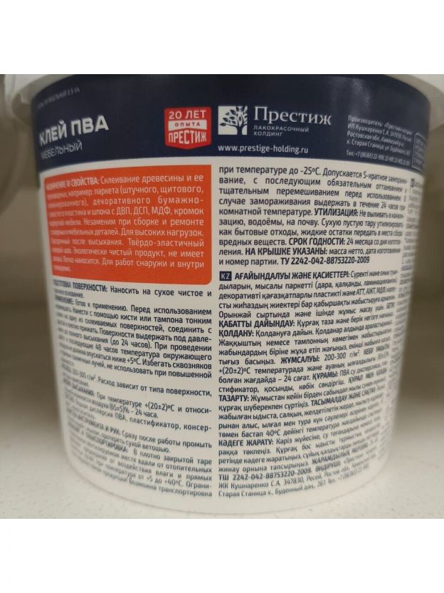Клей ПВА Престиж, мебельный, однокомпонентный, 900 г, 01-146-000-009