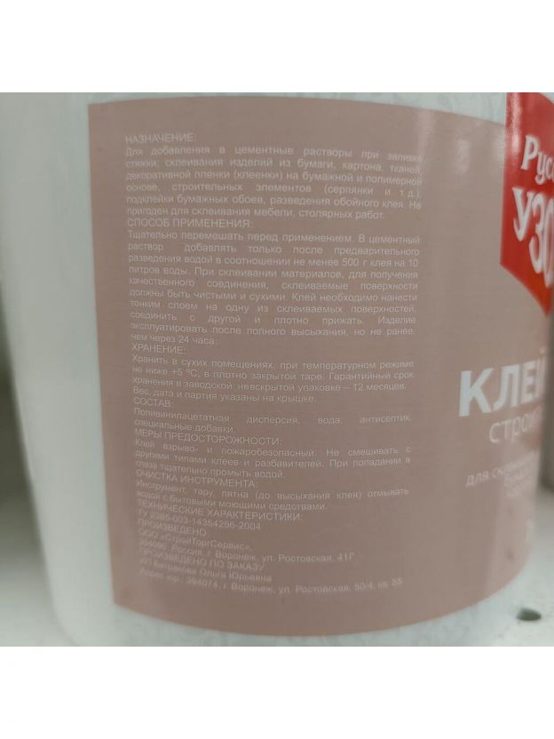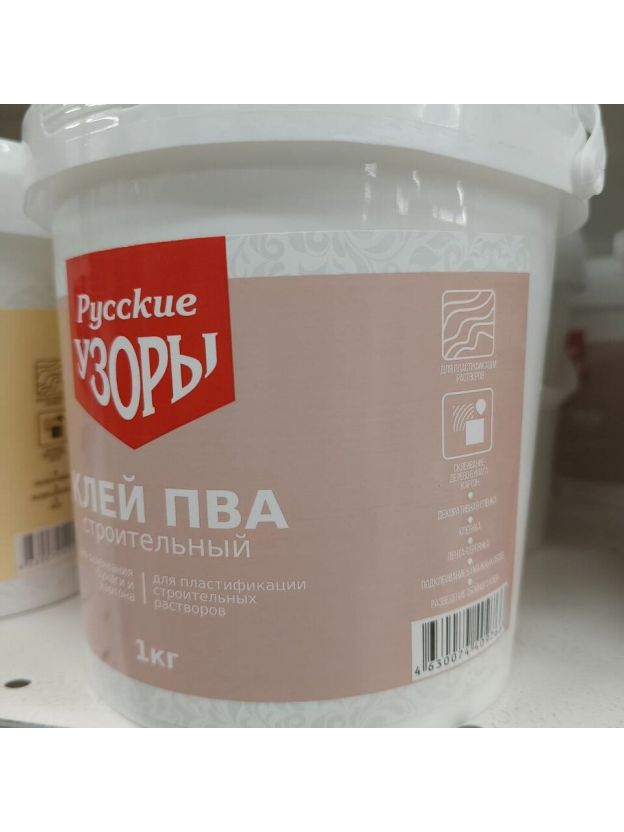 Клей ПВА Русские узоры, строительный, однокомпонентный, 1 кг