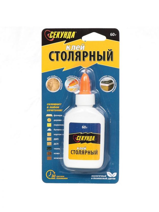 Столярный клей "Секунда" подходит и для домашнего использования, и использования на мебельных фабриках. Подходит для наружного применения. Отличается повышенной водостойкостью. Образует очень прочное и надежное соединение деревянных деталей, легко обрабатывается.