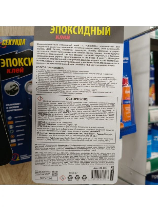 Клей Секунда, эпоксидный, универсальный, многокомпонентный, 6 мл, 403-115, Эпоксидный