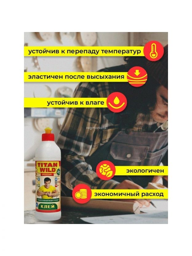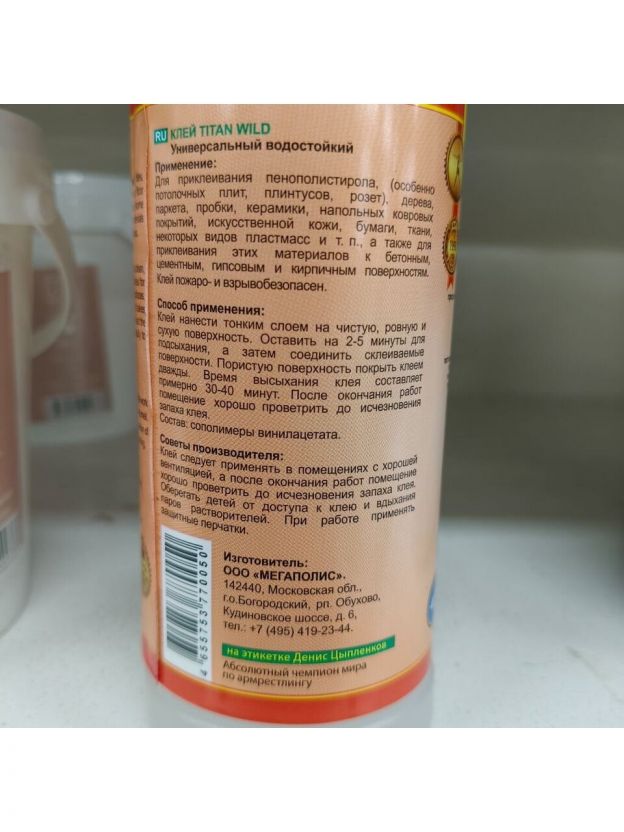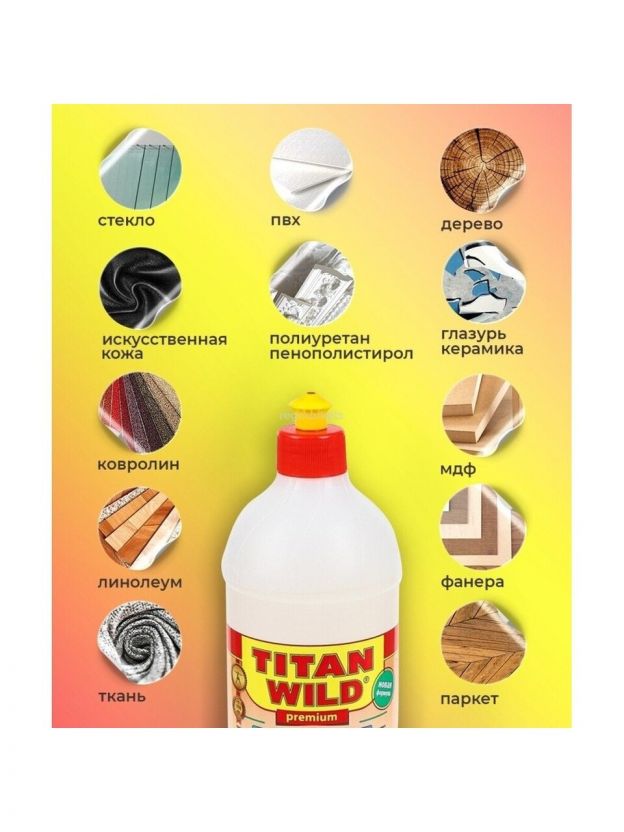 Универсальный клей Titan Wild — это полимерный водостойкий материал, который может использоваться в строительных и канцелярских работах. Благодаря особой формуле обеспечивает надежное склеивание без образования комков и деформации. Применяется для склеивания в разных комбинациях, а также для приклеивания материалов к бетонным, цементно–известковым, гипсовым, штукатурным поверхностям.