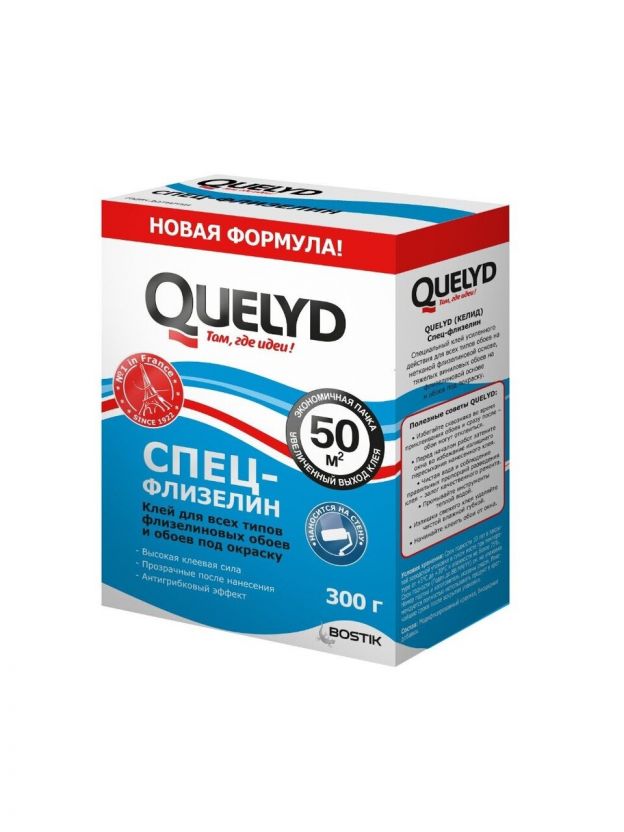 Клей для флизелиновых обоев, Quelyd, Спец-Флизелин, 50 кв.м., 300 г, 50035125