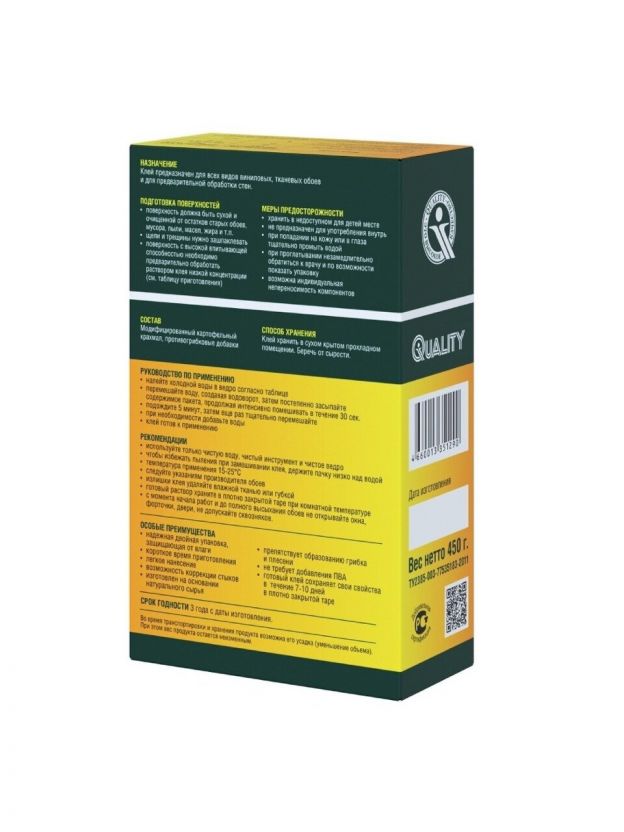 Клей для виниловых обоев, Quality, 450 г, 11-12 рулонов, картон, 7228