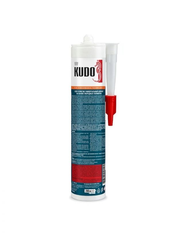 Клей-герметик KUDO характеризуется превосходной адгезией к большинству строительных материалов: кирпич, бетон, стекло, гипсокартон, полиуретан, различные виды пластика (кроме полиэтилена, полипропилена и фторопласта), эмаль, керамика, сталь, медь, цинк, свинец, алюминий, дерево. Не требует предварительного грунтования. Для внутренних и наружных работ.