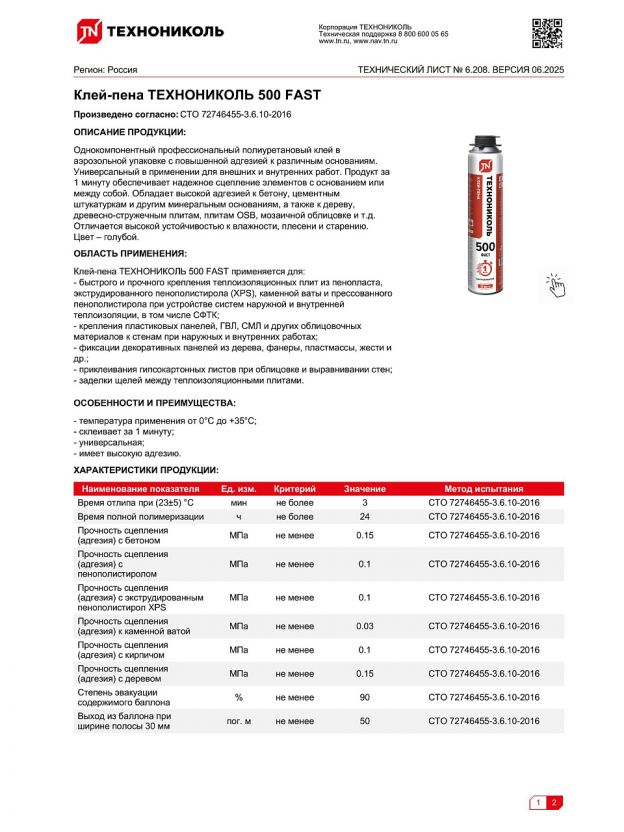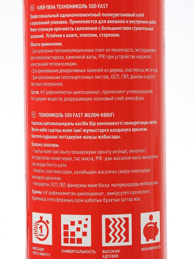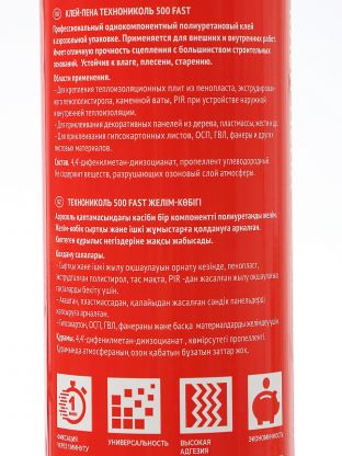 Клей-пена ТЕХНОНИКОЛЬ 500 FAST: монтаж за 1 минуту, высокая адгезия, универсальное решение для ремонта и строительства в любое время года.