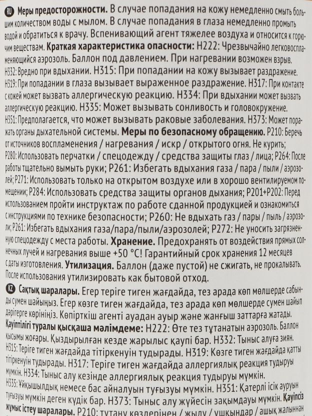 Объём баллона — 1000 мл, цвет пены — голубой. Этого достаточно для выполнения как точечных, так и масштабных работ.