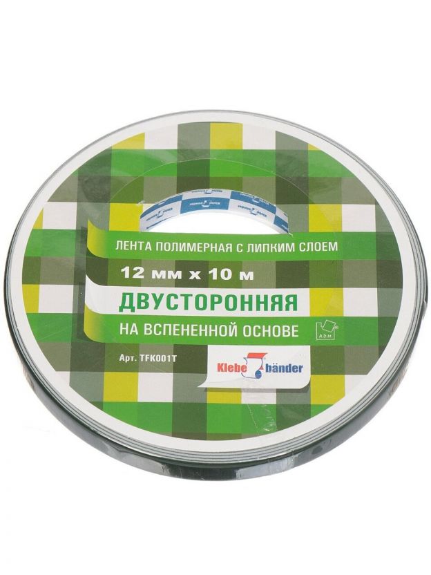 Клейкая лента 12 мм, двухсторонняя, основа вспененная, 10 м, Klebebander, TFK001T
