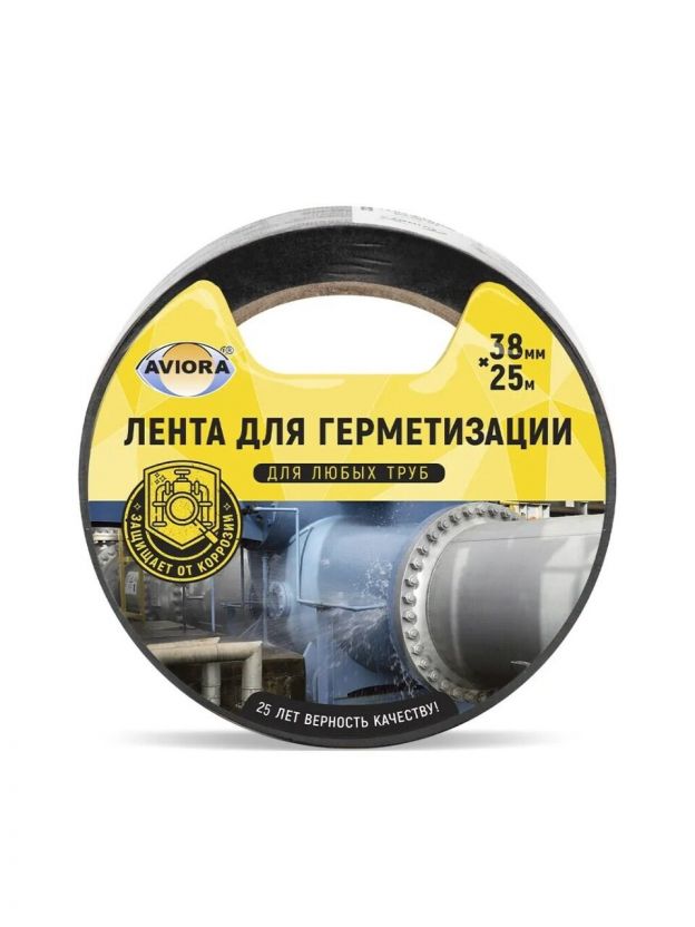 Клейкая лента 38 мм, основа ПВХ, 25 м, Aviora, для герметизации труб, 302-049