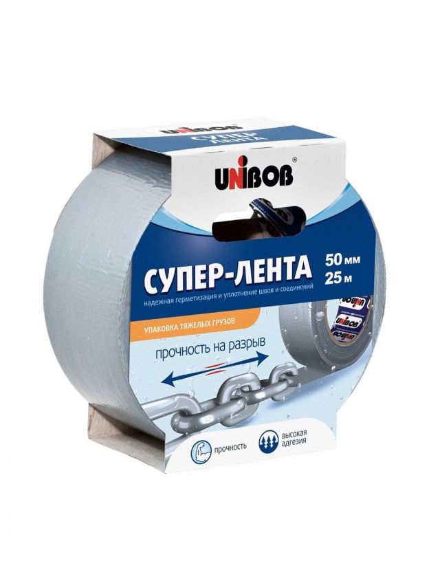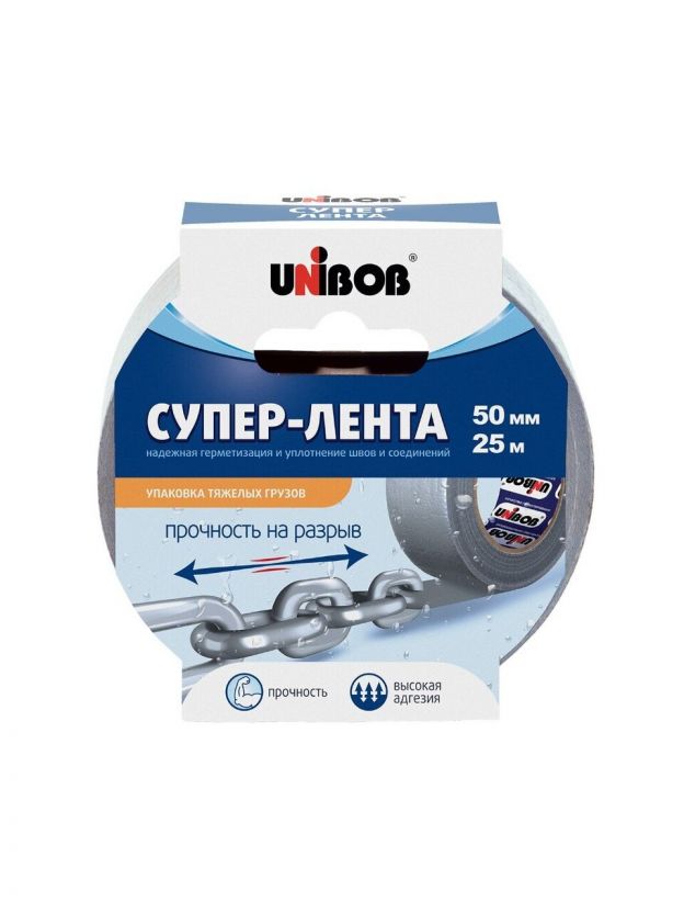 Клейкая лента 50 мм, ткань-полипропилен, 25 м, Unibob, высокопрочная, армированная, 175 мкм, 44265