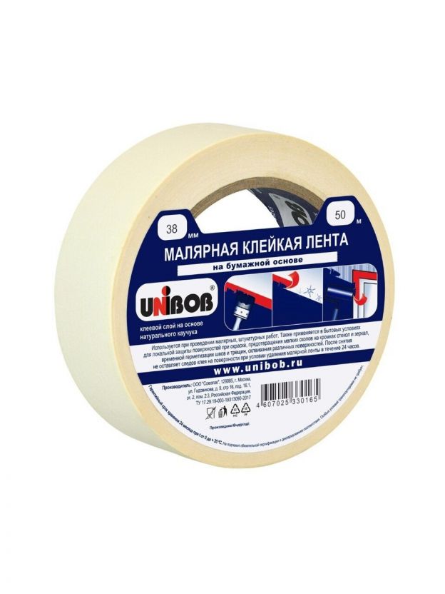 Клейкая лента малярная Unibob, 28138 – идеальный выбор для аккуратных малярных работ и ремонта. Надежно защищает поверхности, легко удаляется без следов, обеспечивает ровные линии при покраске. Отличное сцепление с различными материалами гарантирует чистый результат и экономию времени.