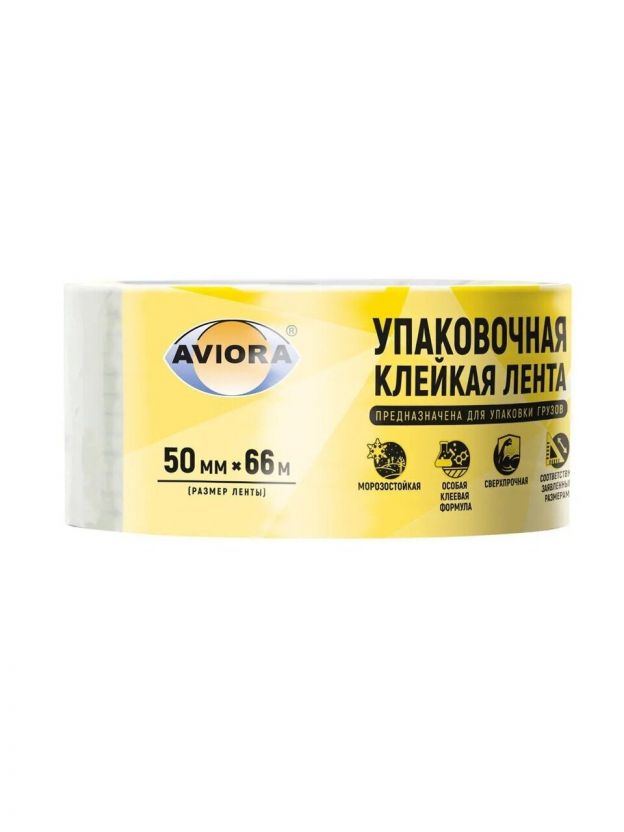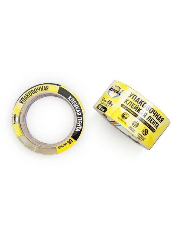 Клейкая лента упаковочная 50 мм, прозрачная, основа полипропиленовая, 66 м, Aviora, 50 мкм, 301-001