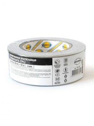 Клейкая суперлента 48 мм, серая, основа полимерная, 50 м, Aviora, армированная влагостойкая, 302-161