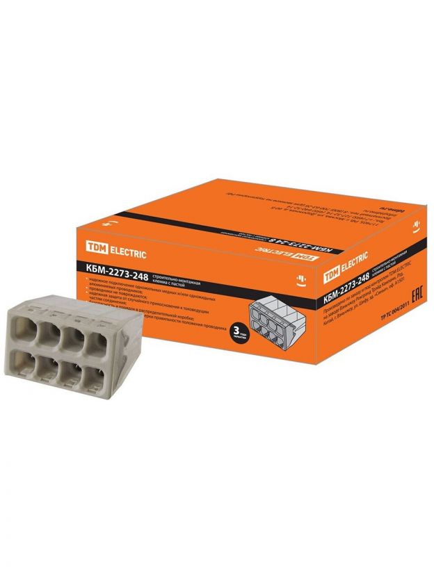 Клемма КБМ-2273-248, строительно-монтажная, с пастой, 2.5 мм2, TDM Electric, SQ0517-0117
