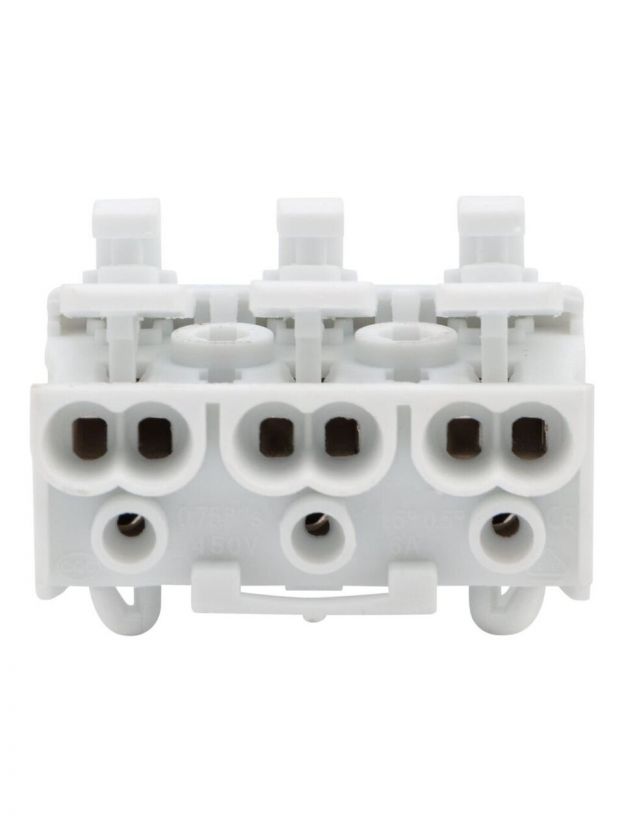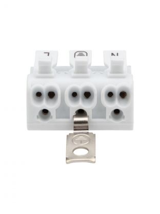 Пружинные трехполюсные клеммы с заземлением и с монтажными ножками REXANT предназначены для присоединения и ответвления одножильных и многожильных медных проводников в электрических цепях переменного тока напряжением до 450 В. Наличие маркировки («фаза», «ноль», «земля») на подвижной части зажима, наличие монтажной ножки и винтовой контакт заземления.