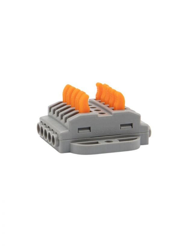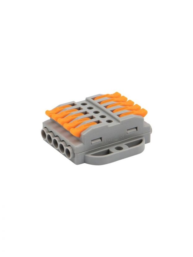 Клемма проходная СМК 222-425P, 10 отверстий, серая, 5 полюсов, с монтажной площадкая, 0.08-4 мм2, Rexant, 07-6265