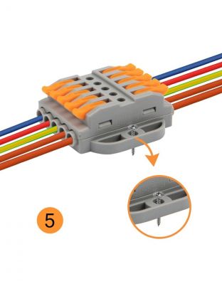 Многоразовые пятипроводные клеммы Rexant с монтажной площадкой предназначены для соединения медных одножильных и многожильных зачищенных проводников тонкого сечения. Контакт осуществляется путем зажима проводника пластиной. Конструкция предотвращает случайное размыкание контакта. Специальное технологическое отверстие на корпусе клеммы предназначено для проверки соединения тестером-пробником или щупом мультиметра. Корпус из пластика делает контакт изолированным.