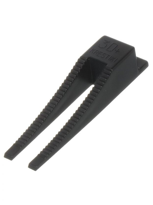 Клин для плитки — это элемент системы выравнивания керамической плитки при облицовке стен и пола. Используется совместно со специальными зажимами для выравнивания кафеля в горизонтальной плоскости. Также применяется как самостоятельный элемент при укладке плитки на стену, позволяя создавать ровные швы нужной толщины.