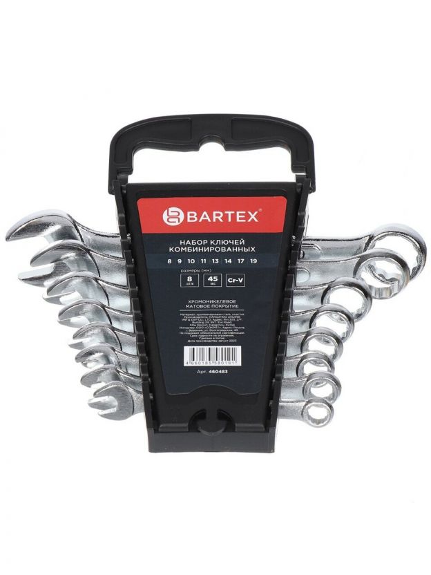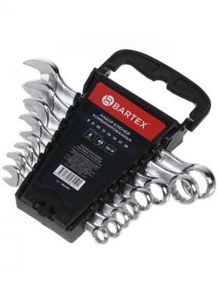 Ключ комбинированный, 8 предметов, Bartex, 8-19 мм, матовый, CrV сталь, подвес