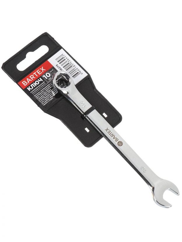 Ключ комбинированный, Bartex, 10 мм, хромированный зеркальный, CrV сталь