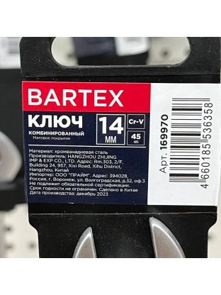 Ключ комбинированный, Bartex, 14 мм, матовый, CrV сталь
