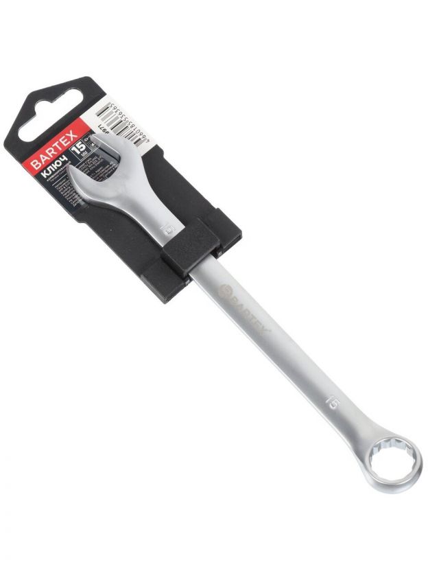 Ключ комбинированный, Bartex, 15 мм, матовый, CrV сталь