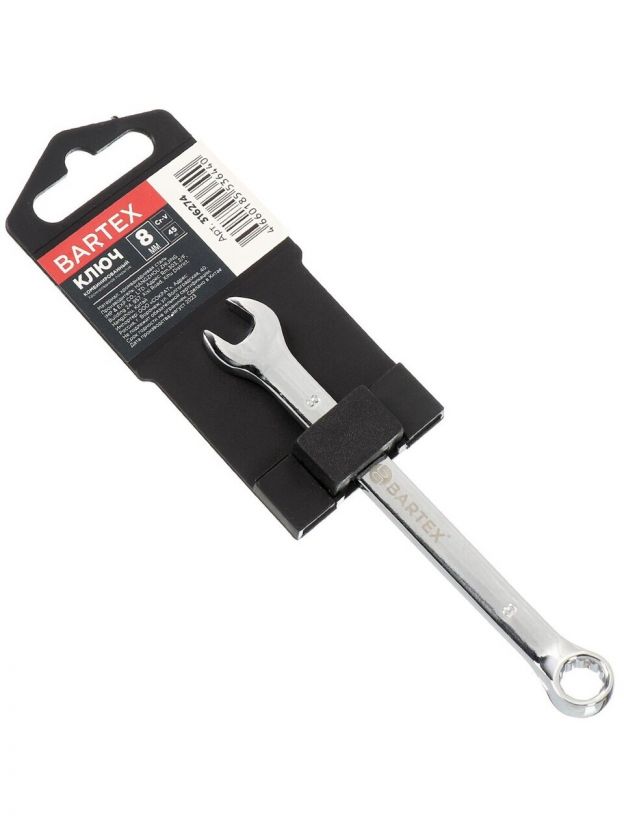 Ключ комбинированный, Bartex, 8 мм, хромированный зеркальный, CrV сталь