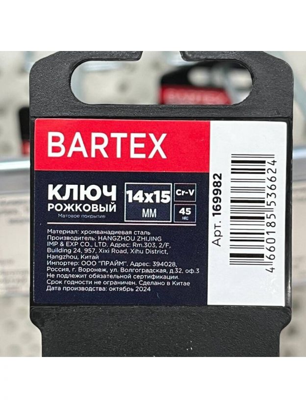 Рожковый ключ Bartex - это качественный инструмент, который прослужит Вам долгие годы. Даже при ежедневном использовании ключ не потеряет своих первоначальных свойств, ведь хромированное покрытие надежно защищает его от повреждений и коррозии. Эргономичная форма изделия обеспечивает надежный и удобный захват, что не позволит Вашим рукам устать даже при длительной нагрузке.