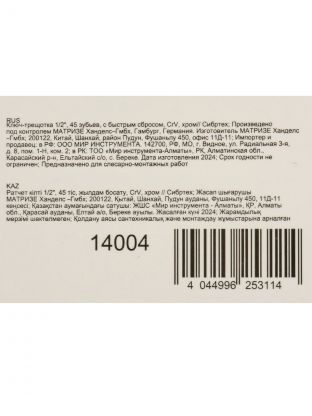 Ключ трещотка Сибртех 1/2 дюйма с переключателем — это оптимальный выбор для тех, кто ищет надежный инструмент с долгим сроком службы. Механизм на 45 зубьев обеспечивает плавный ход и точную передачу усилия, а система быстрого сброса позволяет мгновенно менять насадки даже одной рукой. Благодаря использованию хром-ванадиевой стали (CrV), трещотка устойчива к коррозии и рассчитана на многолетнюю эксплуатацию без потери рабочих характеристик.