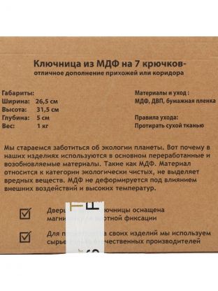 Ключница 26х31 см из МДФ WT-446 — компактное хранение ключей для дома и дачи: порядок, стиль и экономия пространства за 1 минуту.