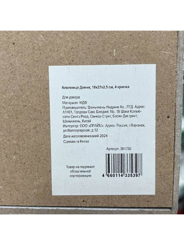 Ключница Домик, 18х27х2.5 см, 4 крючка, Y4-3863