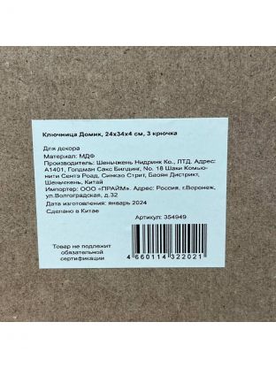 Ключница Домик, 24х34х4 см, 3 крючка, на декоративном панно, Y4-3484